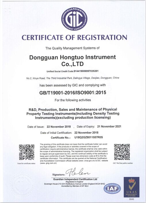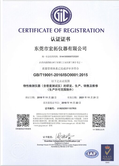 宏拓儀器通過ISO9001:2015質(zhì)量體系管理認證,通過國家計量測試中心全面質(zhì)量與性能檢測,獲得國家計量器具型式批準CPA證書,參與起草制定: 【GB/T 1040.1-2025塑料 拉伸性能的測定】、【GB/T 1634.1-2025塑料 負荷變形溫度的測定】、【GB/T 44559.1-2024塑料 硬質(zhì)塑料沖孔性能的測定】 、【GBT 43139-2023鑄造鋁合金液減壓凝固試樣密度檢測】......等標準。